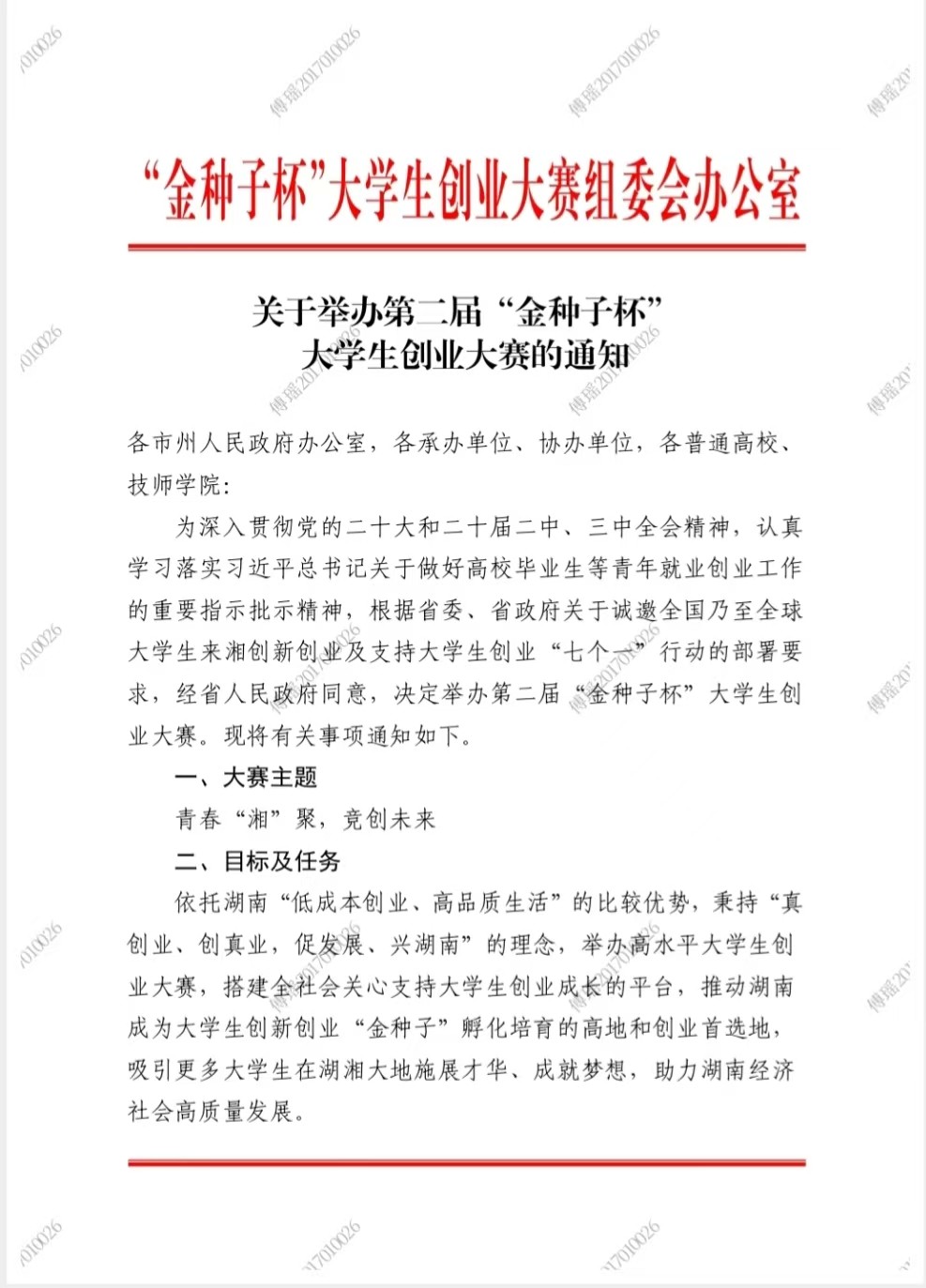 关于举办第二届“金种子杯”大学生创业大赛的通知