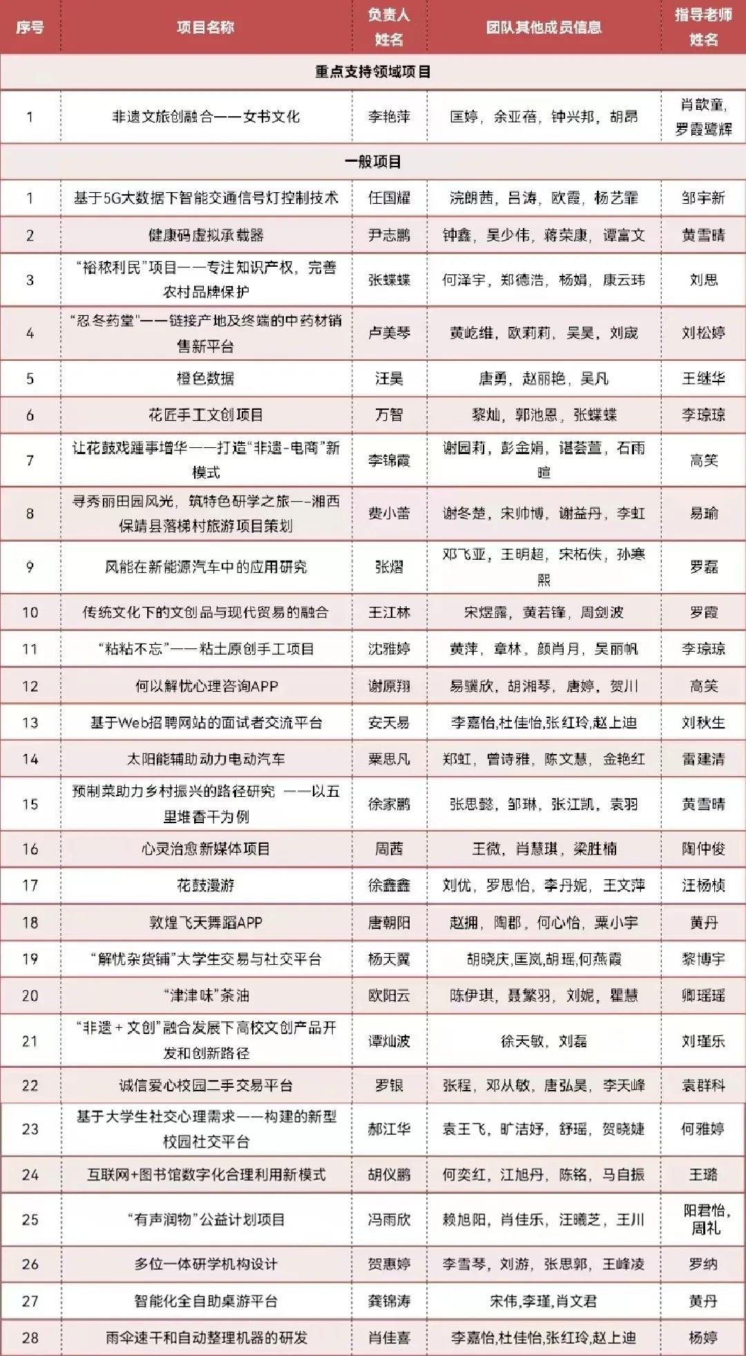 近期,湖南省教育厅发布了《关于公布 2022 年度湖南省大学生创新创业训练计划项目名单的通知》(湘教通〔2022〕174号),文件公布了2022年度湖南省大学生创新创业训练计划项目立项名单,湘潭理工学院推荐申报的29个大学生创新创业训练项目均获准立项。其中包括重点支持领域项目1项,一般项目28项。