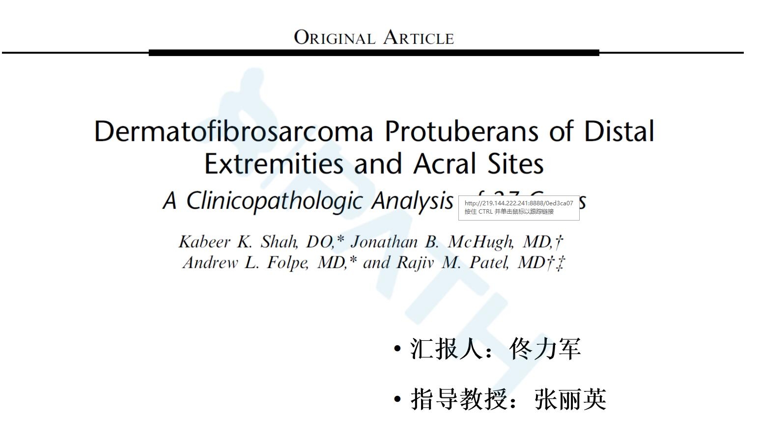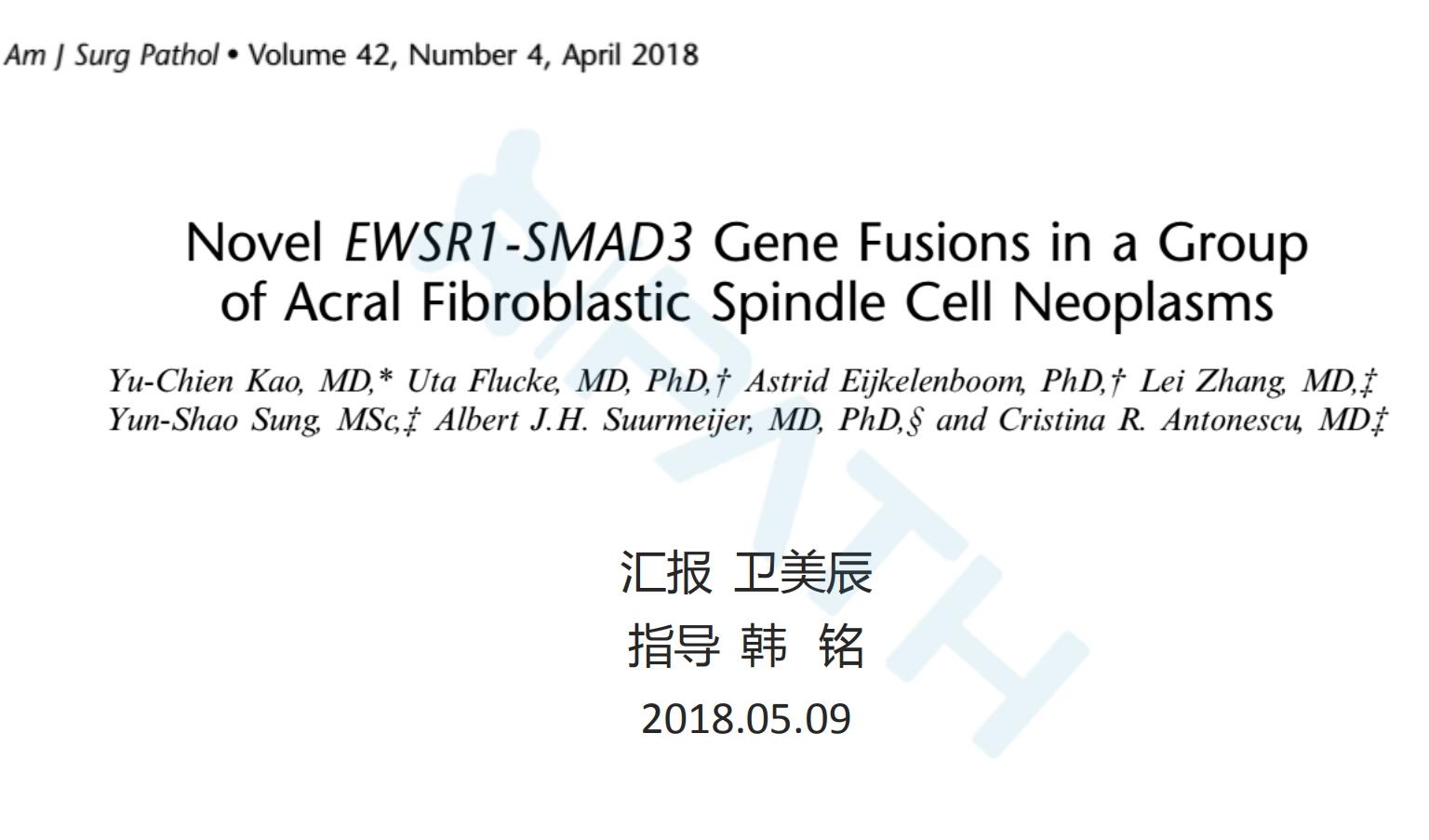 一组肢端纤维母细胞样梭形细胞肿瘤新发现EWSR1-SMAD3基因融合