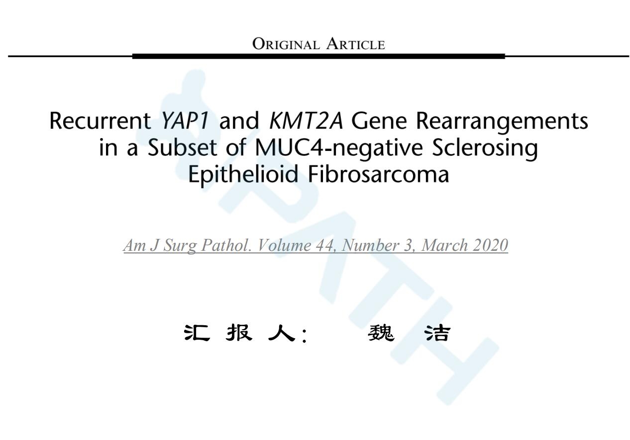 在一部分MUC-4阴性的硬化性上皮样纤维肉瘤中具有重现性的YAP1基因与
