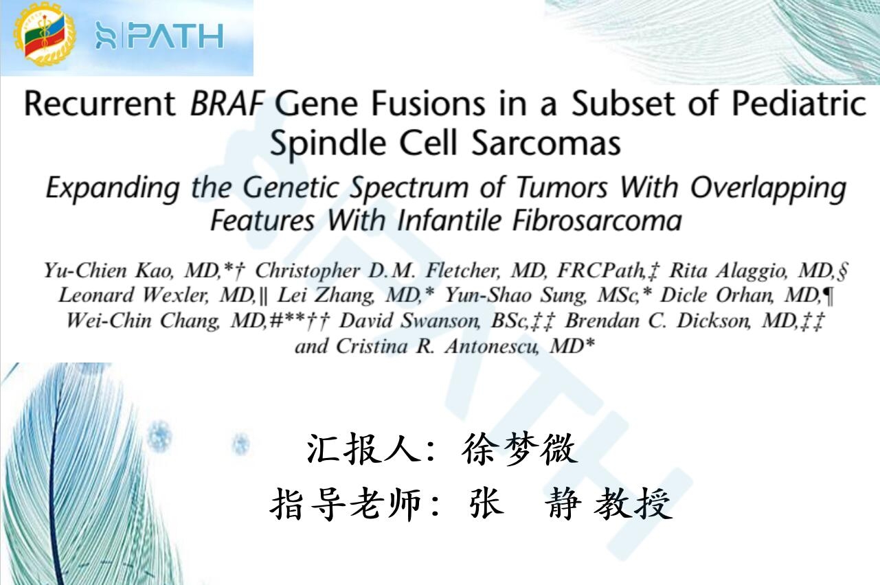 小儿梭形细胞肉瘤亚群中复发性braf基因融合拓展婴儿纤维肉瘤的肿瘤遗传谱