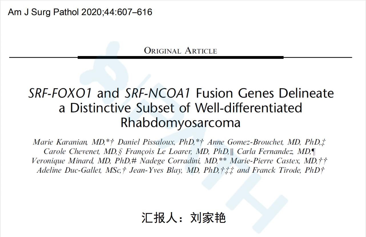 SRF-FOXO1和SRF-NCOA1融合基因显示出高分化横纹肌肉瘤的