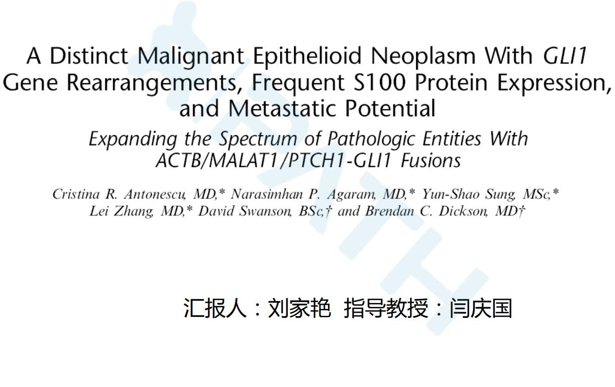 伴有Gli1基因重排,常表达S100,并具有转移潜能的一组恶性上皮样肿瘤