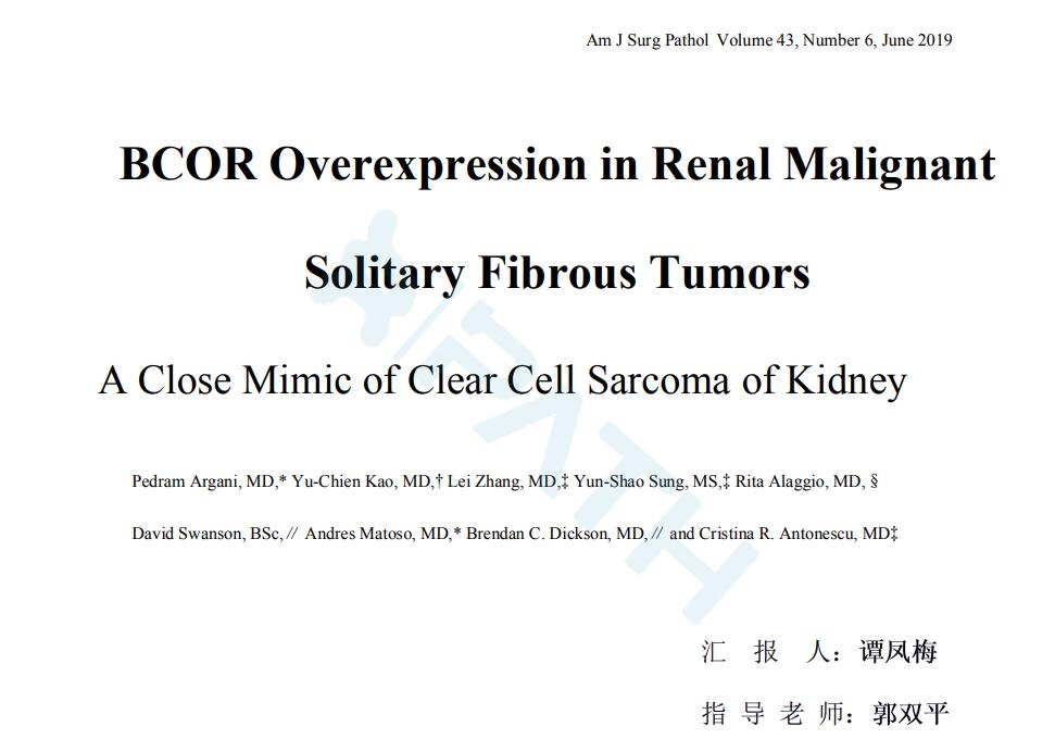 肾脏恶性孤立性纤维性肿瘤BCOR高表达,与肾脏透明细胞肉瘤BCOR表达模