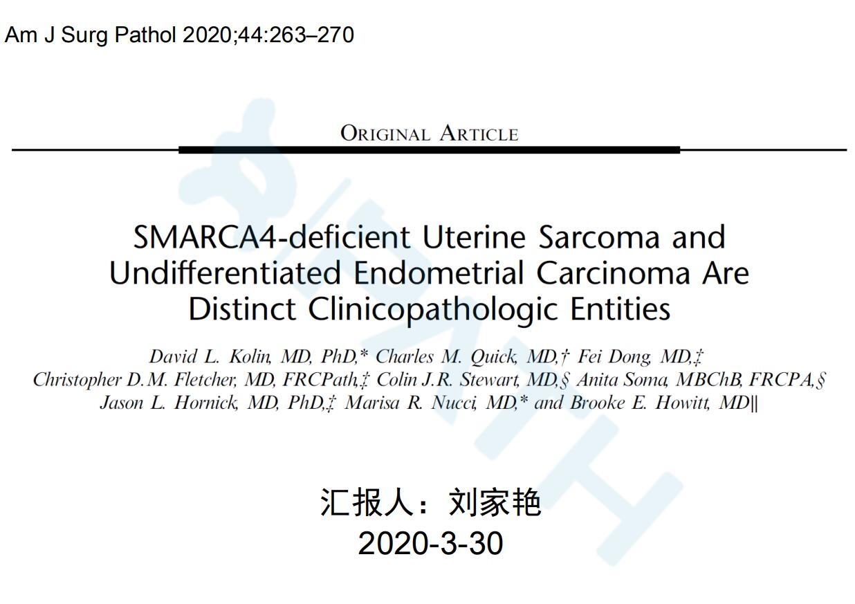 SMARCA4缺陷型未分化子宫内瘤与未分化子宫内膜癌是不同的病理实体