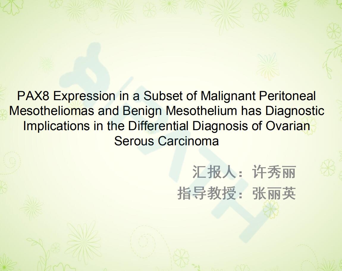 pax8在恶性腹膜间皮瘤和良性间皮增生中与卵巢浆液性癌鉴别诊断中有诊断意