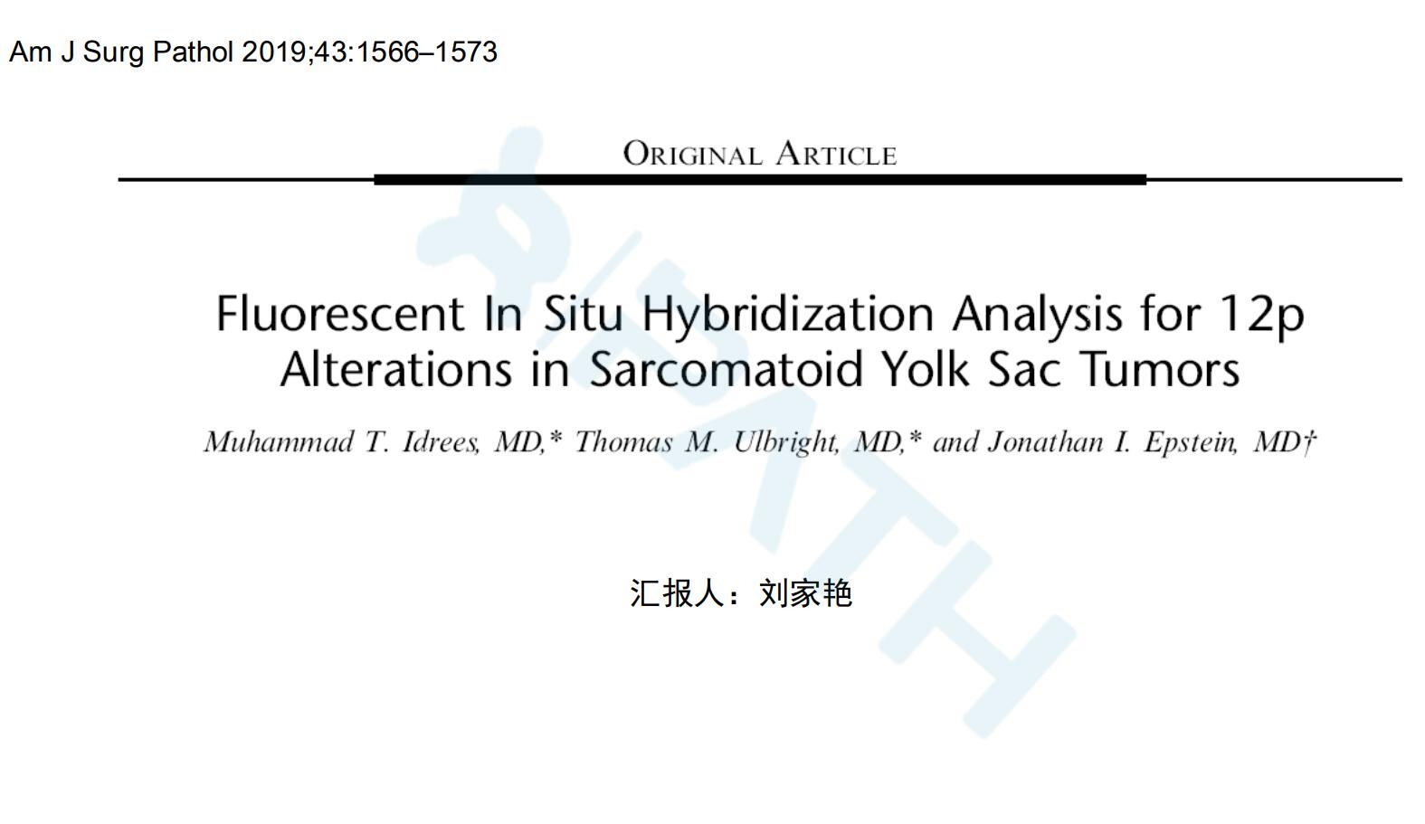 FISH检测肉瘤样卵黄囊瘤12p突变
