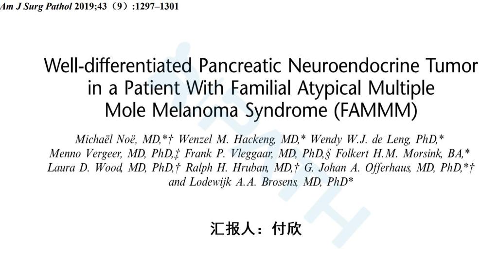 一例伴有家族性非典型性多发性痣-黑色素瘤综合征(FAMMM)的胰腺高分化