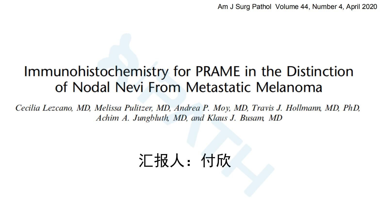用PRAME免疫组化来鉴别淋巴结痣与转移性恶性黑色素瘤
