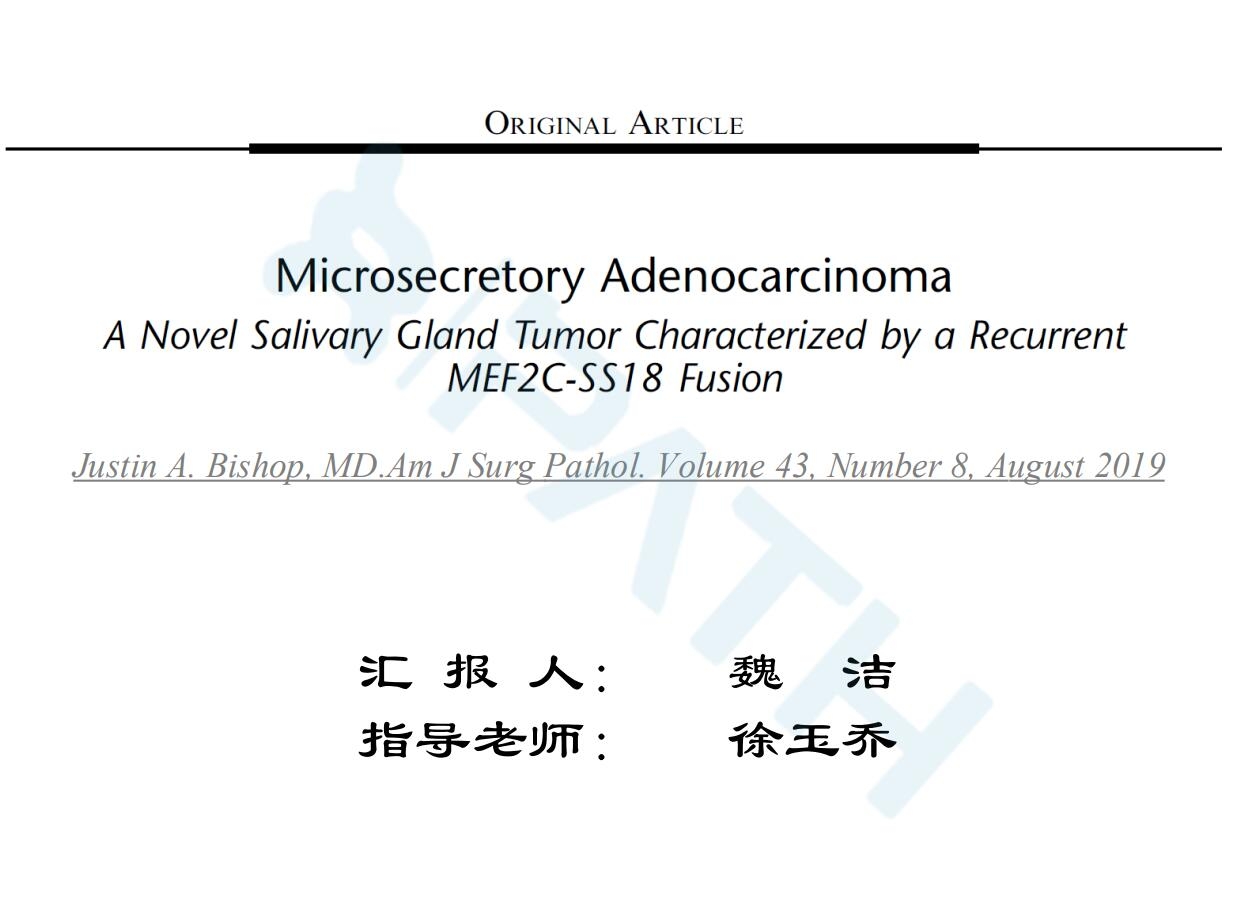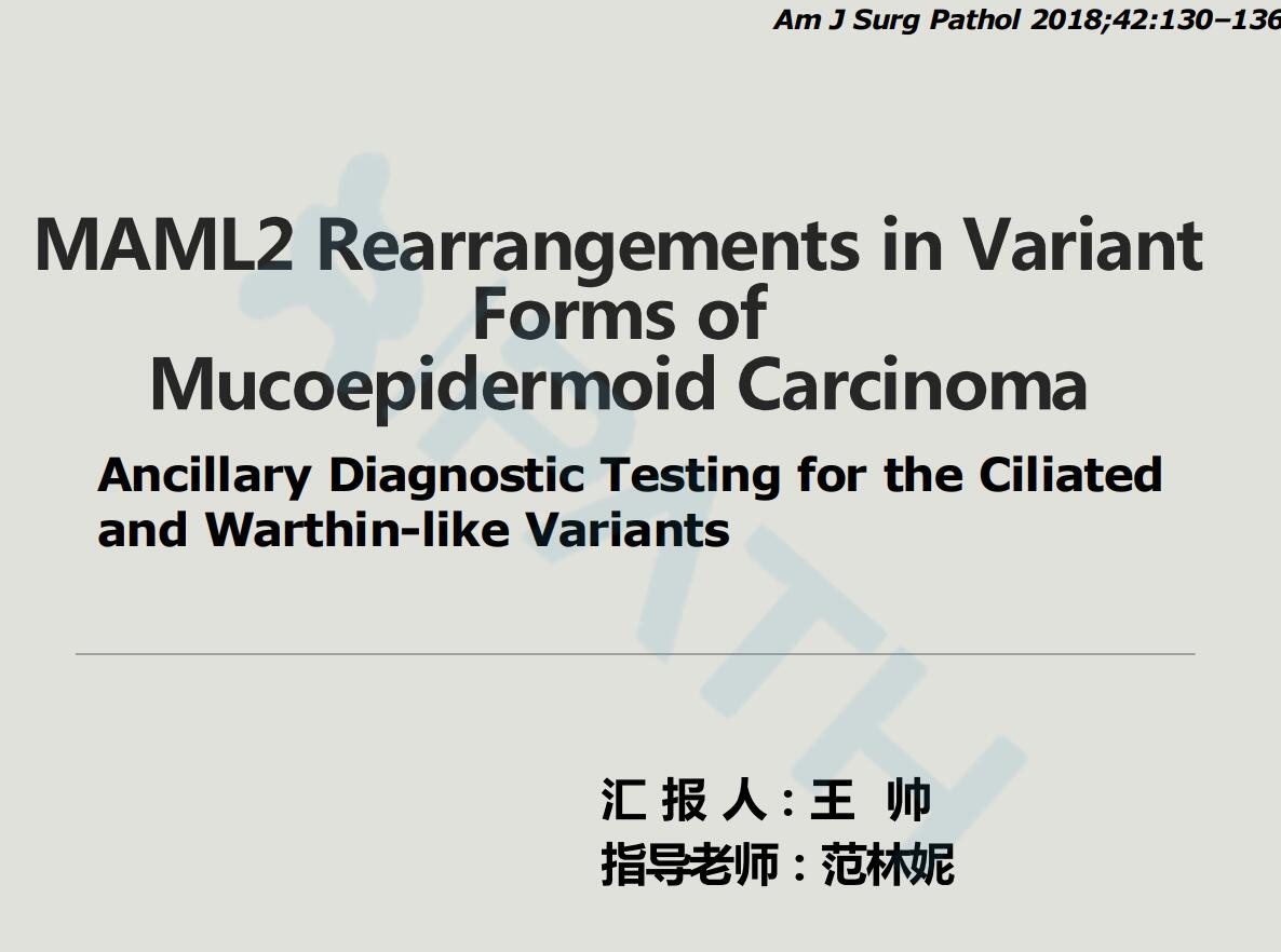 MAML2基因重排对不同类型的黏液表皮样癌的(具有纤毛样的和腺淋巴瘤样的