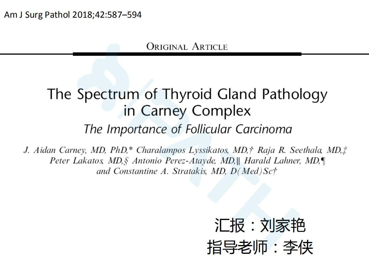 Carney综合征中甲状腺病理谱系及滤泡性癌的重要意义