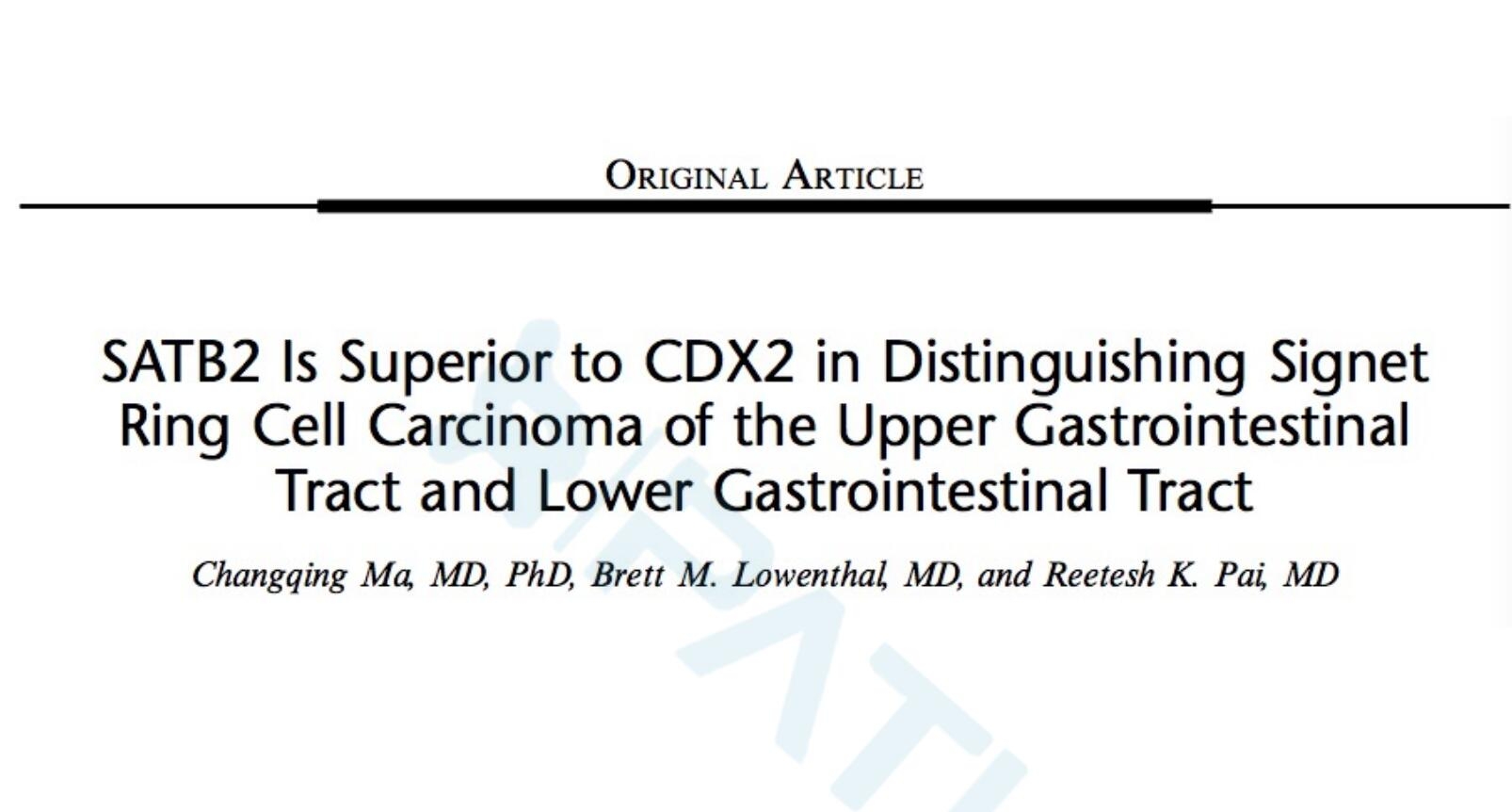 SATB2在鉴别上消化道与下消化道印戒细胞癌中的作用比CDX2效果好