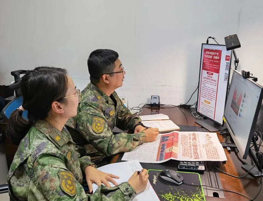 注重抓好各级组织领学督学,制作宣传标语、播报时政要闻、绘制主题板报,浓厚学习氛围熏陶官兵。广积学习素材拓宽视野,充分利用各种媒体资源,将中央媒体整理发布的党的二十大报告“学习手账”“金句汇总”“思维导图”等推送到官兵微信终端,对报告内容进行再学习,学原文、悟重点,有效形成全员共学、齐头并进的良好局面。