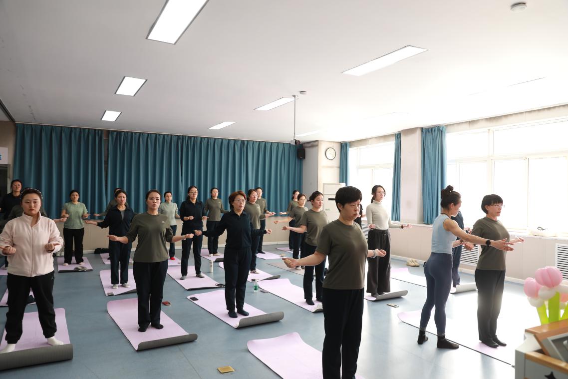 活动现场,瑜伽老师围绕护理人员长期值守、伏案教学、实训指导等职业特点,针对性开展呼吸调整、体能舒展、力量与柔韧训练。大家在静心冥想中释放压力,在一伸一展间放松身心。参加人员以优雅的姿态、专注的状态,充分展现了护理队伍柔韧从容、积极向上的精神风貌。