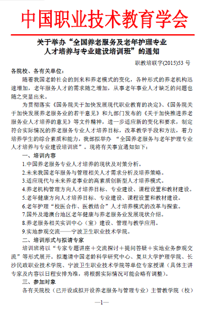 关于举办“全国养老服务及老年护理专业人才培养与专业建设培训班”的通知