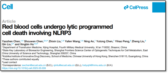 4月18日晚11时,大学西京医院输血科胡兴斌副教授团队在国际顶刊Cell发表题为“Red blood cells undergo lytic programmed cell death involving NLRP3”的研究论文。大学西京医院输血科胡兴斌副教授为该论文通讯作者,华东理工大学生物工程学院刘琴教授、陈守文副研究员为共同通讯作者;西京医院输血科陈要臻副研究员为第一作者,华东理工大学生物工程学院陈守文副研究员、西京医院输血科刘志新副主任技师和王雅芬医师为共同第一作者。
