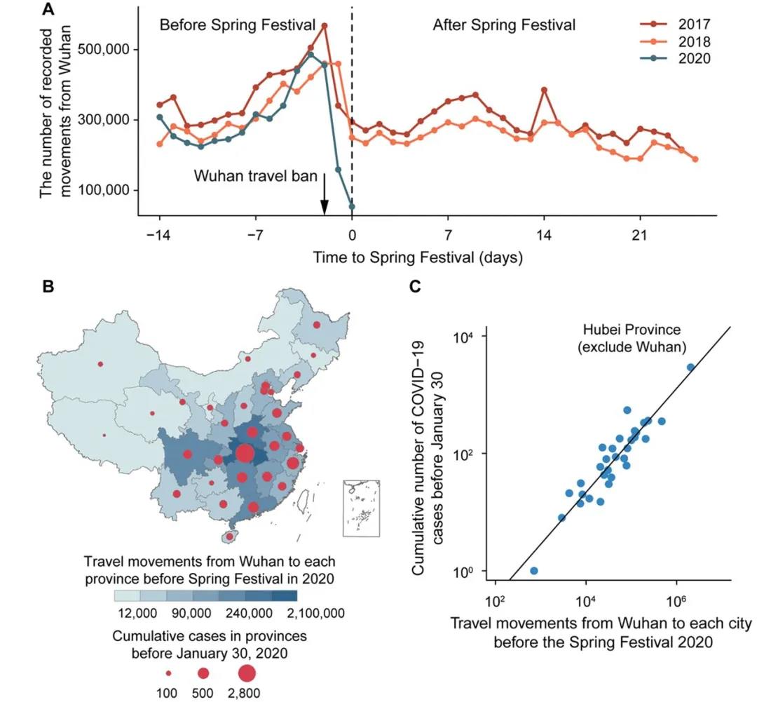 所以这次由北京师范大学、牛津大学、普林斯顿大学等中英美三国高校开展的分析,已经是近一个月内《科学》刊登的第三篇类似分析了[3-4]。与此前相比,这次分析融合进了手机信号反映的人员流动情况,从而让模型准确度进一步升高。