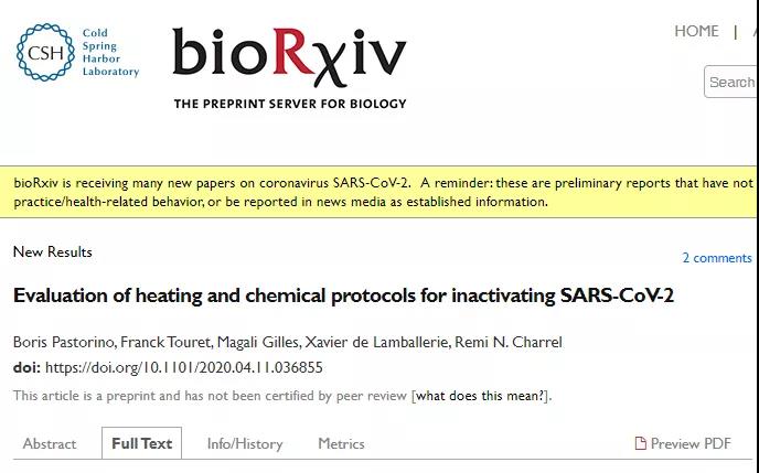 还有更可怕的,4月11日,法国艾克斯-马赛大学(Aix-Marseille University)的Rémi N. Charrel教授团队在预印本bioRxiv上(未经同行评议)发表了一篇题为“ Evaluation of heating and chemical protocols for inactivating SARS-CoV-2”的研究,研究团队在测试了包括10种用于病毒灭活的方案后发现:新冠病毒可以在高温环境下生存,在接近沸点的92˚C高温下,要15分钟才能完全灭活3