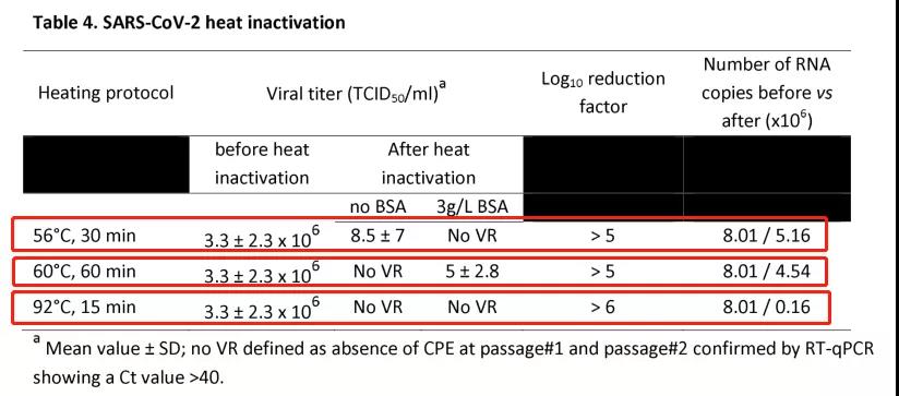 研究还发现之前通常灭活病毒的方案60˚C--1小时,56˚C--30分钟并不能完全灭活新冠病毒。