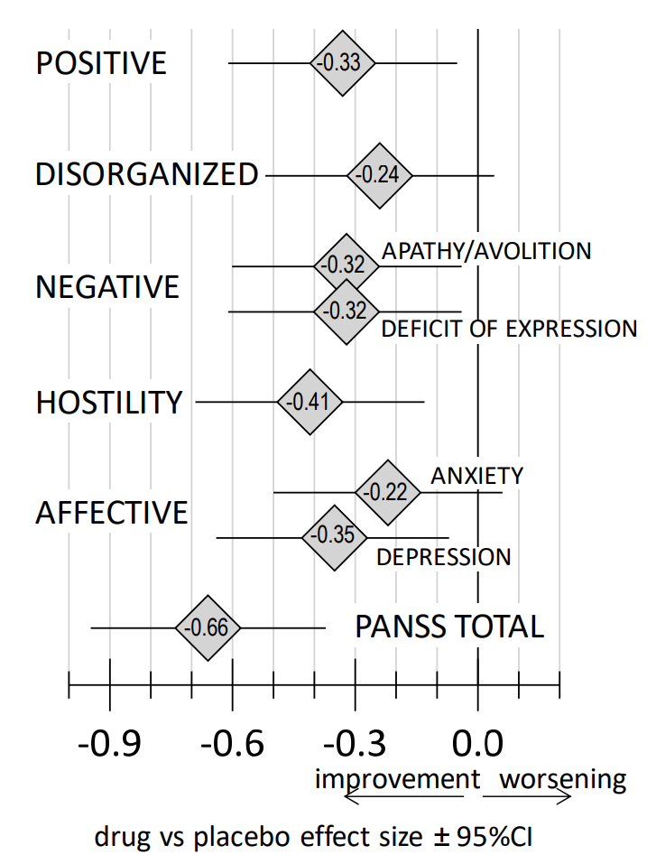 图2相比于安慰剂,SEP-363856改善PANSS五因子模型各维度的效应量