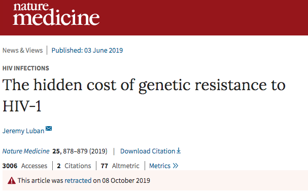 10月8日,《自然·医学》正式撤销该研究并发布声明,称论文作者通过跟赖希及其同事交流后,了解到英国生物样本库基础数据中存在基因数据偏倚,有人为的技术处理,由此可能导致论文的主要结论无效,于是论文作者主动提出撤稿。[3]