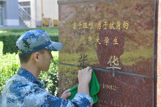 金秋的落叶承载着后人的思念,东升的朝阳衬托着烈士的荣光。活动中,“张华传人”志愿服务队队长刘凯鑫讲解了张华事迹与张华精神,新学员代表王瑞青则表达了争做新一代“张华传人”的决心,坚定了要做一个对国家对人民有意义的人的信念。活动最后,伴着庄严的《献花曲》,学员们纷纷将胸前的白花置于雕像前,学员代表为烈士雕像敬献花篮。