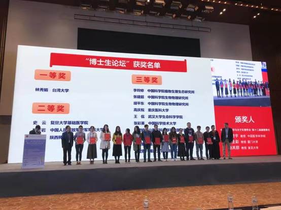 中国生物化学与分子生物学会博士生论坛奖主要奖励在生物化学与分子生物学领域做出优秀成绩的在读硕士、博士研究生。该奖项每两年评选一次,每次奖励5-10人。奖项评审委员会从报名者中遴选出不超过20位候选者(候选人必须是论文的第一作者,其主要工作在国内完成),然后在大会的专设分会场作报告,现场评委评选,确定最终获奖者。本次博士生论坛共获奖14名,杨子岩博士代表我校获第三名二等奖的佳绩。