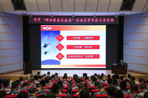 为落实军委政治工作部关于常态开展理论服务走基层活动部署要求,根据空军丁司令员、于政委批示精神,11月11日下午,空军首次“理论服务走基层”活动第二组来到基础医学院学员二大队,以新学员为授课对象,习近平强军思想“空军篇”为授课内容,围绕“理论书怎么读、理论课怎么讲、理论骨干怎么当”,开展授课辅导。