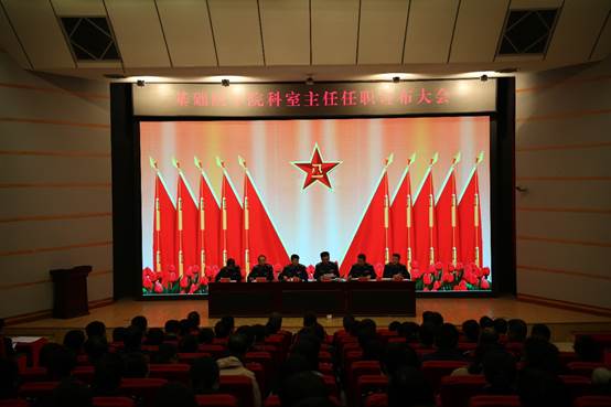 会上,院长尹维宏宣读了学校、学院党委关于科室主任任职的通知。政委秦毓荣向卸任的科室主任表示感谢和敬意,向首届科室主任、书记提出赓续传承、接续使命,承接担当、迎接挑战,站得更高、走得更实三点要求,并在未来发展上向主任书记们支了招,他说长远发展首先要提高政治站位、扛起育人事业、加快转型发展、打造团队力量。