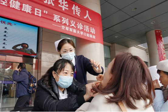 “来,张嘴,啊——”口腔医院在门诊楼前广场,骨干医师、优秀护理团队正在为来往市民做免费口腔检查、义齿修复咨询、牙周健康评估、正畸方案建议、口腔预防保健,人手一本《口腔健康手册》……身处现场,暖意融融,不仅有检查,还有趣味“教学”,现场气氛热烈,干货满满。一位老年市民感慨道:“过去总觉得年纪大了掉牙是正常现象,今天听完讲解才明白牙周健康的重要性,今后一定好好保护牙齿。”