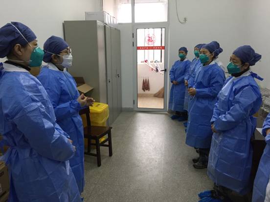 “我从科室带来了李向阳、安雯两名护士,选她们我只用了1分钟,理由很简单,工作能力强,一个没孩子,一个未婚。但这次腺病毒患者数量巨大,人力资源紧缺,部队首长紧急从附近驻地医院调配来医护人员,一天之内我们成立了来自三家单位,十七位护理人员组成的护理团队。”团队是有了,但李沛发现护理组中大多数人没有从事传染病护理的工作经验,她们甚至没有带过N95口罩、没有穿过隔离衣。召之即来也必须来之能战!脱岗培训显然是来不及了,李沛采取边工作边培训的方式,利用晨会交班、一对一带教、微信推送学习资料以及集中授课等多种形式展开培训,设计丰富的教学内容:个人防护用品使用、手卫生的方法、鼻拭子采集方法、腺病毒感染疾病相关知识学习等。为确保教学效果,在保证完成每天常规工作的基础上,李沛加班制作多媒体幻灯,安雯、李向阳承担操作小教员的角色,在大家的共同努力下,一个个业余选手迅速成长为了专业的传染科护士。据不完全统计,此次疫情阻击战斗一个月间,护理组共配置液体4000余瓶,静脉穿刺2000余次,采集鼻咽试纸300余次,护理隔离康复患者上千人。