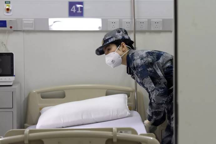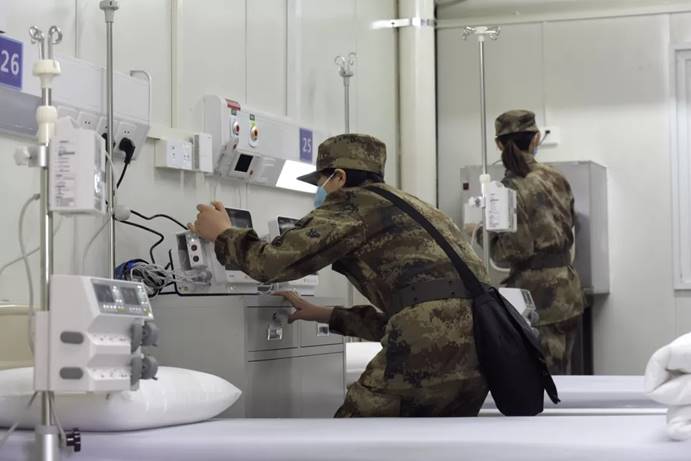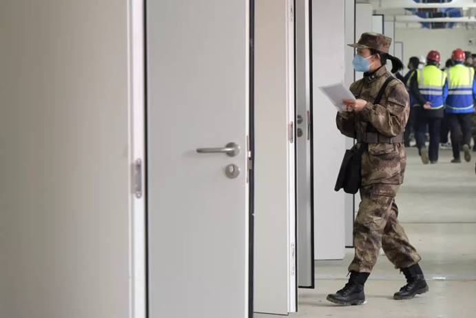 2月3日,军队支援湖北医疗队队员进入武汉火神山医院病房完成各项准备工作。中国军网记者范显海摄