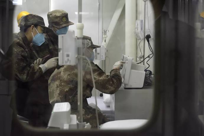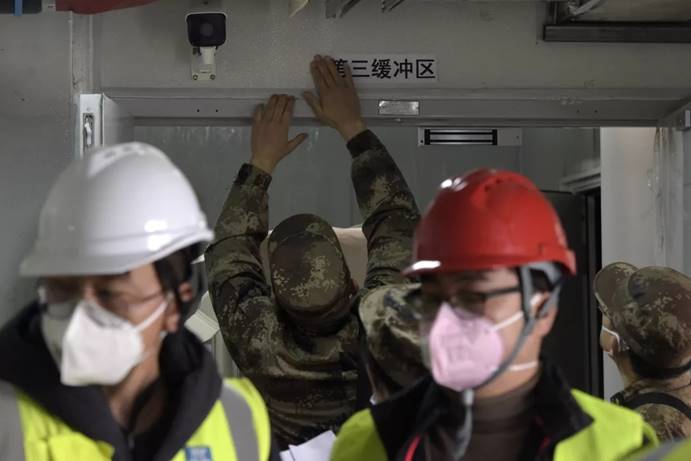 2月3日,军队支援湖北医疗队队员进入武汉火神山医院病房完成各项准备工作。中国军网记者范显海 摄