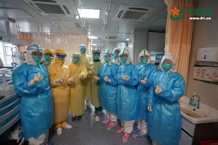 △军地护理人员“比心”鼓励加油。中国军网记者高辉摄