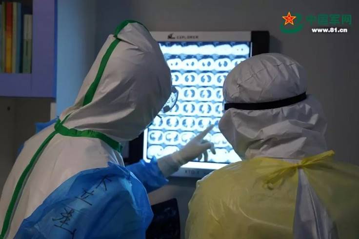 战“疫”一线,军地医护人员并肩作战、团结协作的事例还有很多。不仅是在重症监护室,在放射科、在检验科、在其他病区,同样在上演着军地同心、共同战“疫”的动人故事。