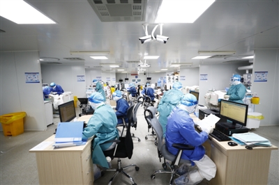 武汉火神山医院重症医学一科工作场景。人民图片