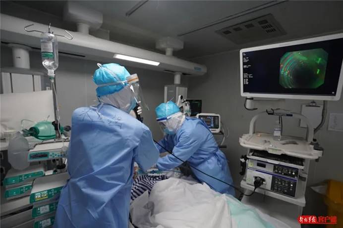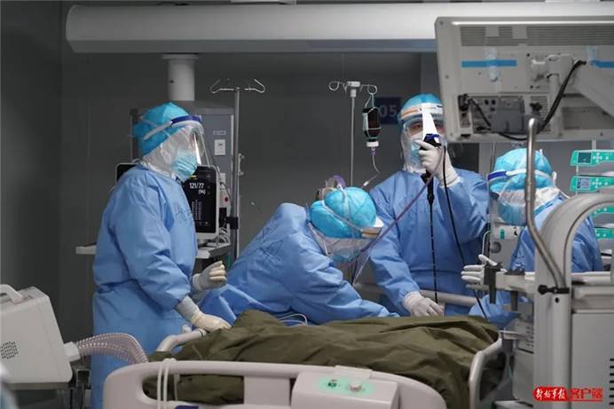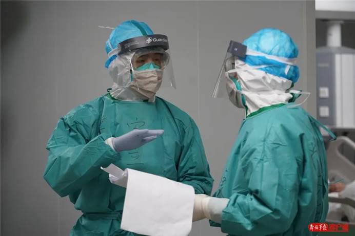 火神山医院重症医学一科副主任宋立强:“呼吸道感染的病人,头部这个位置是风险最高的,口腔、鼻子的分泌物肯定含有病毒。无论是换呼吸面罩,还是拿着面罩经口做气管插管,患者都有可能因咳嗽而喷出气溶胶,因此,这些工作风险都比较大。作为一个工作多年的老同志,我应该以身作则,给大家做表率,这样,年轻人心里可能就会更踏实一些。”