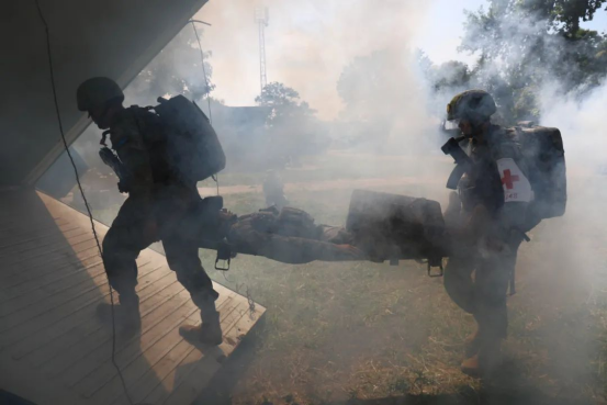 毕业前夕,空军军医大学组织学员展开军事医学综合训练。