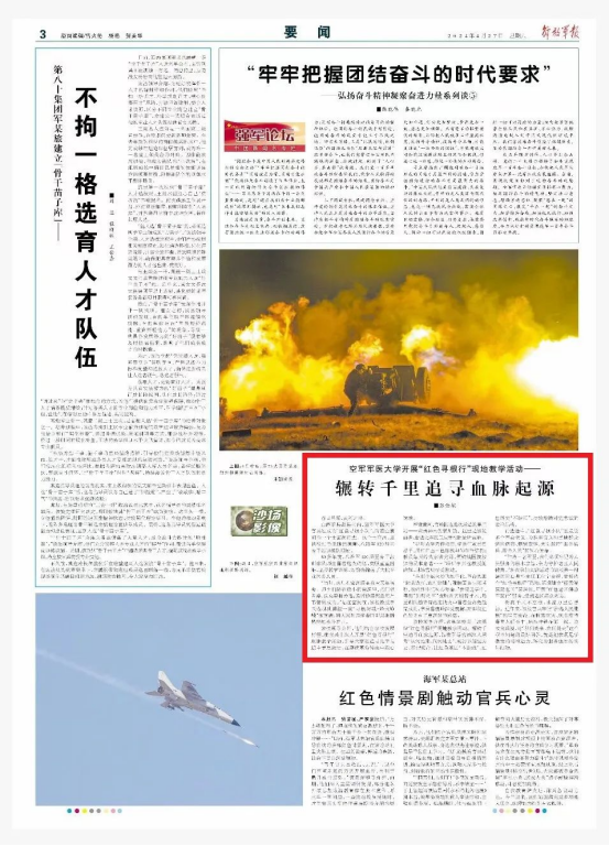 该校领导介绍,他们结合学校发展历程,在官兵中深入开展“红色寻根行”现地教学活动,引导大家在追寻先辈足迹中学思践悟,在赓续革命传统中凝心铸魂。