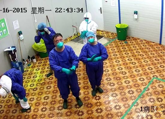 援非抗埃期间,郝春秋教授在病区更换防护服