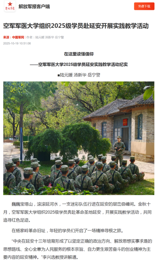 [媒体看军大]空军军医大学组织2025级学员赴延安开展实践教学活动