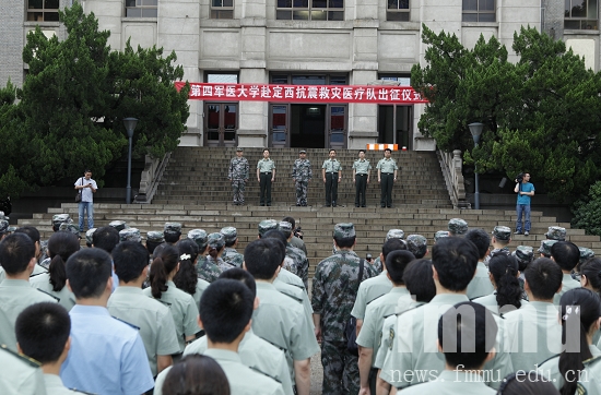 7月22日18:20,按总后勤部指示,我校戴旭光政委率60名国家应急救援医疗队成员,紧急奔赴甘肃省定西市抗震救灾。