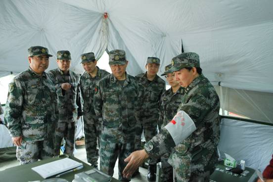 7月26日上午,总参谋部郭副部长一行到我校正在岷县抗震救灾部队检查指导工作。郭副部长一行参观了野战手术车、移动X线机、多功能生化检验机、B超仪等现代医疗设备,了解了我校医疗队在灾区发挥的作用、为受灾群众做出的贡献。