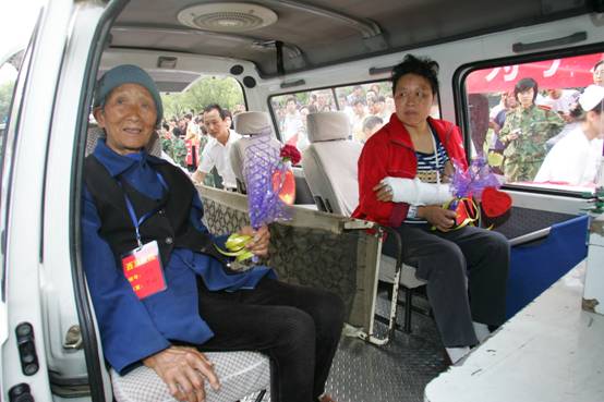 图为后送我校附属医院灾区伤员