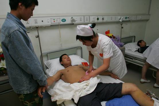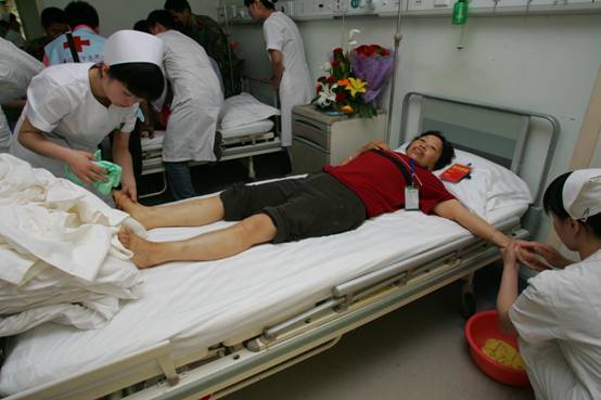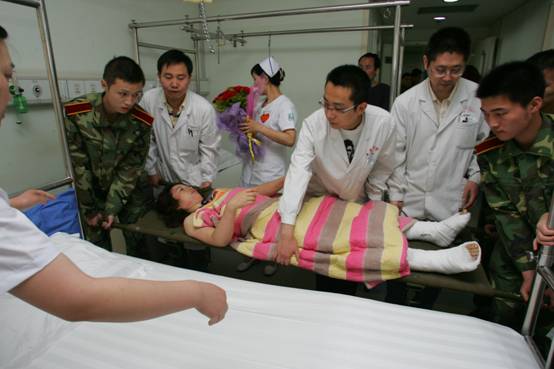 他们为伤员就诊开辟了“生命绿色通道”,伤员到达医院后,立即对伤病员进行诊治,并填写震区伤病员登记表,根据诊断结果分送到不同的病区。对于伤情复杂亟待手术的危重伤员,他们在第一时间组成专家教授进行会诊,讨论制定最佳救治方案,实施手术。