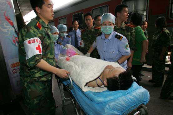 5月21日凌晨7时,承载着来自四川重灾区248名重伤员的专列缓缓驶入西安火车站,守候在站台上的我校医护人员立即根据伤员的伤情分类转运到不同的救护车上,紧急送往西京医院和唐都医院。这是自四川汶川地震发生以来,向陕西省后送的首批重伤员。