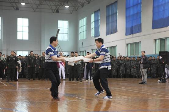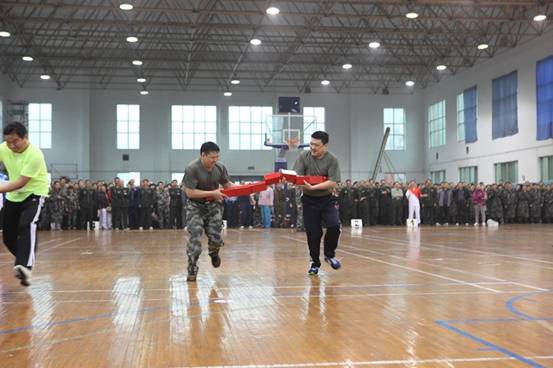 学校第44届运动会师旅团党委班子趣味比赛“齐心协力向前冲”(组图)