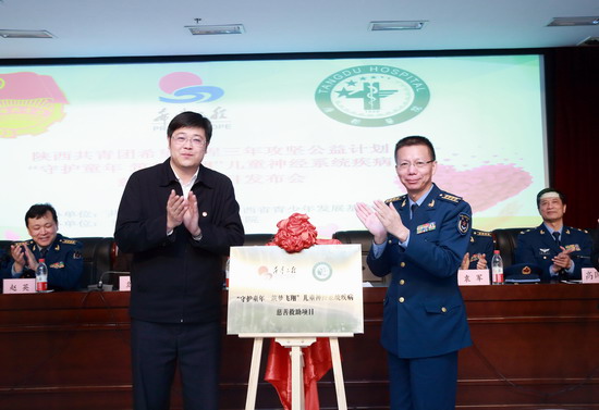 4月19日上午,由共青团陕西省委、省青少年发展基金会等发起陕西共青团希望工程三年攻坚公益计划——“守护童年筑梦飞翔”儿童神经系统疾病慈善救助项目发布会在空军军医大学唐都医院举行。团省委副书记鲁镇,唐都医院李亚军政委、袁军副院长等院处领导,团省委希望办主任、省青基会理事长乌钢以及爱心企业、志愿者、医护人员代表等100余人参加了项目发布会。