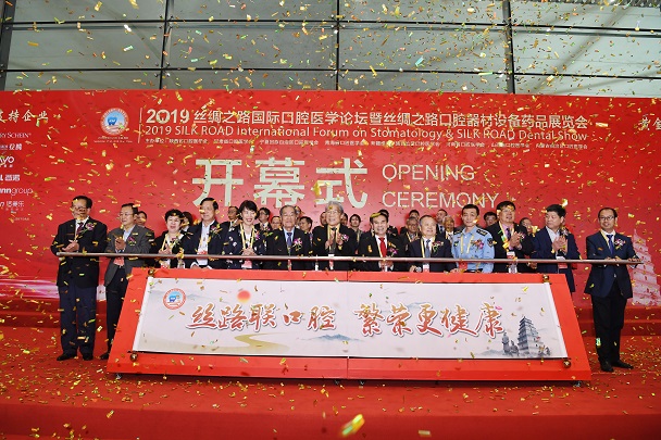 9月19至21日,由陕、甘、宁、青、新、晋、豫、蒙8省(自治区)口腔医学会共同主办,陕西省口腔医学会承办,学校口腔医学院、西安交通大学口腔医学院联合协办的2019丝绸之路国际口腔医学论坛暨口腔器材设备药品展览会在陕西举行。中华口腔医学会首任会长张震康、俞光岩会长、名誉会长王兴教授,论坛主席、陕西省口腔医学会会长赵铱民及丝绸之路沿线8省(自治区)口腔医学会领导参加了开幕式,开幕式由陕西省口腔医学会副会长常晓峰主持,赵铱民主席代表论坛组委会宣布论坛开幕。