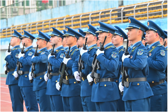 朝阳铺展霞光,《歌唱祖国》的旋律铿锵回荡。护旗方队昂首挺胸、目光如炬,迈着坚定步伐,簇拥五星红旗,稳步迈向升旗台,军容整肃,气势轩昂。